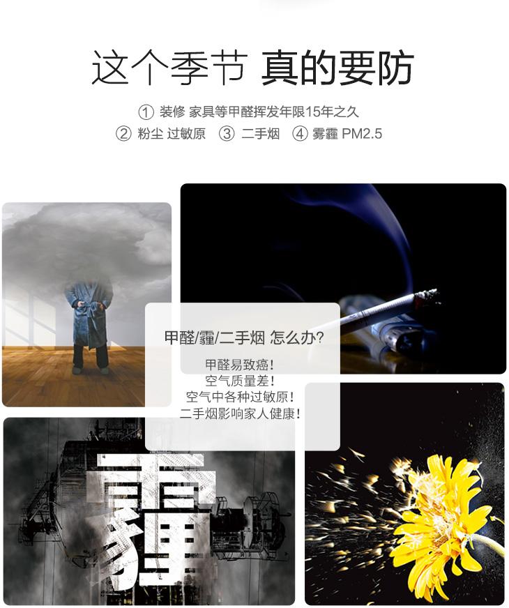 功能: 定時(shí) 除VOC 除花粉 除顆粒物 除甲醛 除煙除塵 殺菌 除霧霾